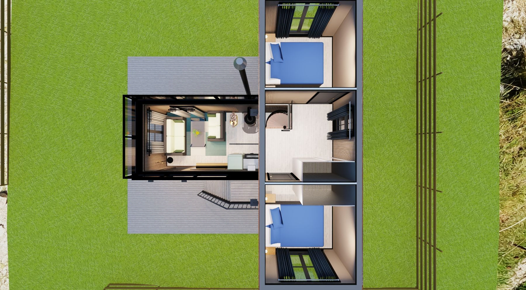 Vårt hyttedesign kombinerer den nostalgiske sjarmen til en tradisjonell hytte med moderne bekvemmeligheter.